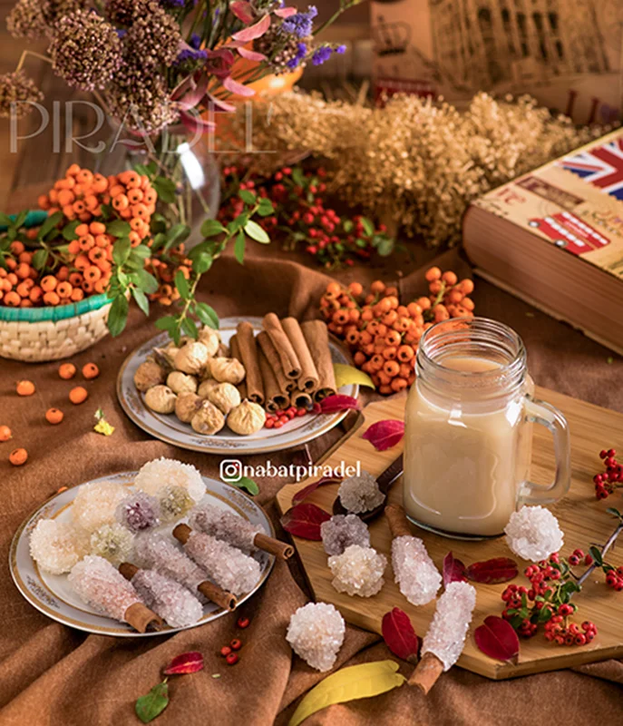نبات های میوه ای حاوی شش طعم مختلف؛ دارچینی،گل محمدی، هل، عناب، انجیر و قهوه است. تعداد هر کدام از میوه ها تقریبا 6 است. نباتی خوشمزه با طعم میوه های ناب لذت خوردن چایی را دو چندان می کند.