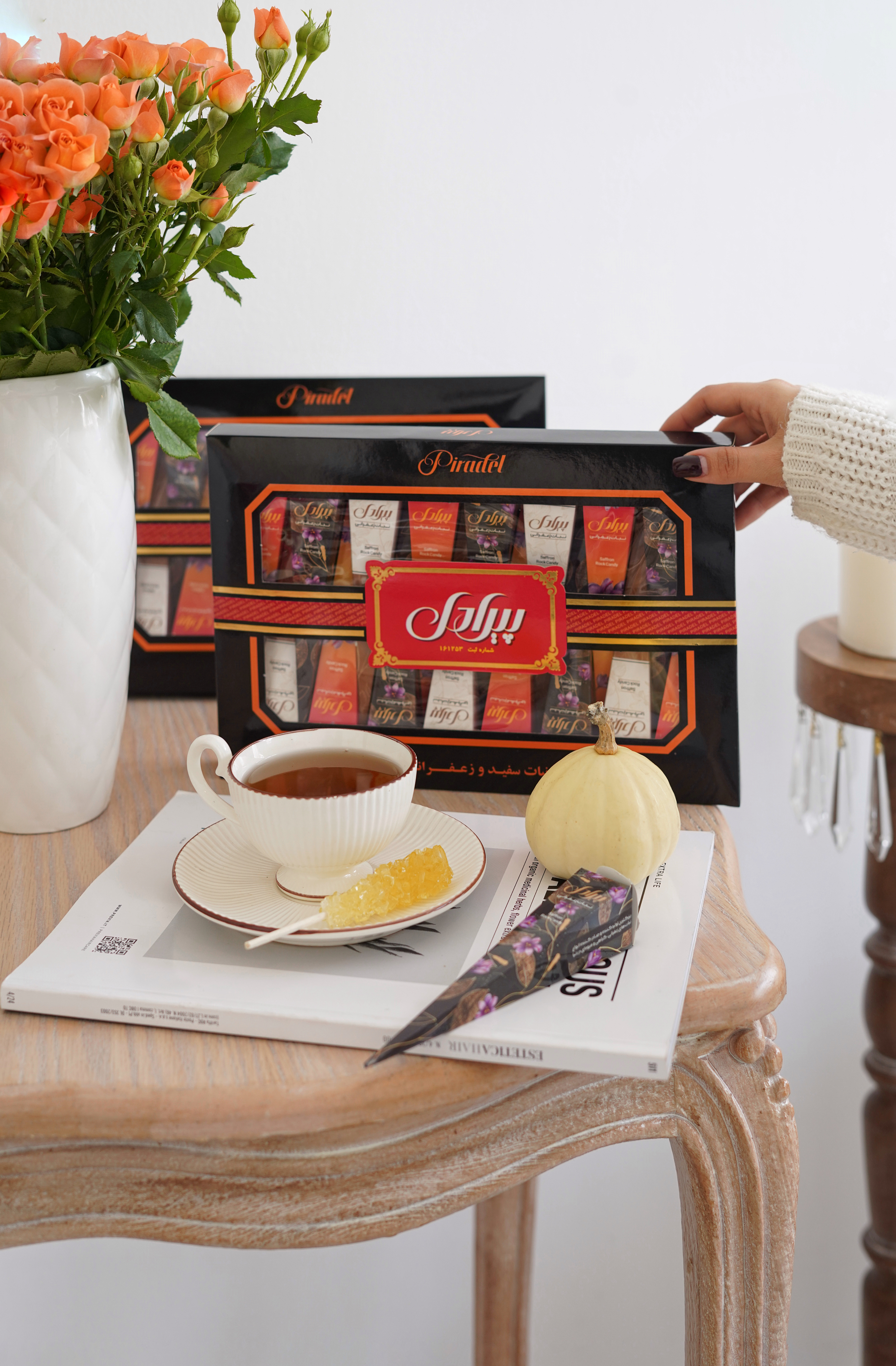 نبات هرمی در سه طرح پلنگی،سورمه ای، وسبزقرمز، و در طعم زعفرانی تقدیم شما عزیزان می شود. نبات های تک نفره هرمی پیرادل به دلیل بسته بندی زیبا و کاملا بهداشتی و داشتن ابعاد مناسب طرفداران زیادی از جمله کافی شاپ ها، تالار ها و رستوران ها دارد. همچنین هدیه دادن این محصول، ایده بسیار زیبایی است. تهیه این محصول به صورت فله برای استفاده در کافی شاپ، رستوران و تالار و... امکان پذیر است.